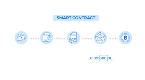 تم إنشاء العقود الذكية على أساس تقنية البلوك تشين، وتعمل العقود الذكية بالطريقة الموضحة في 4 خطوات رئيسية: