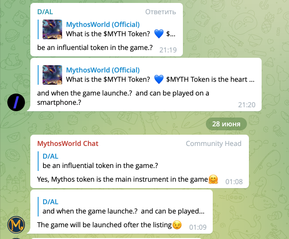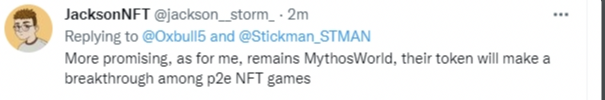 Social monitoring was one of the key activities. The service monitors the web, specifically the most prominent social media channels like Reddit and Twitter. Analyze online brand image and sentiment about the project. Once we found questions or comments relevant to MythosWorld or another play to earn topics, we commented in that thread.