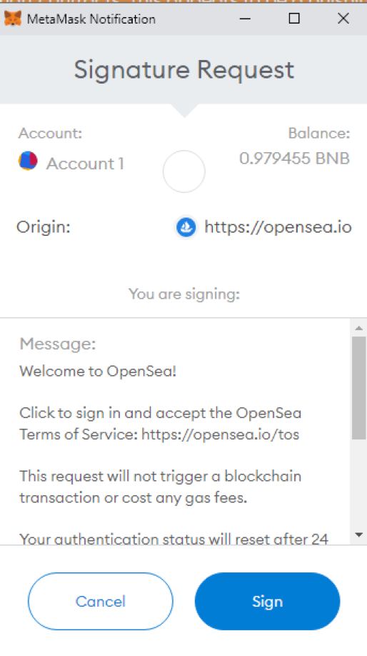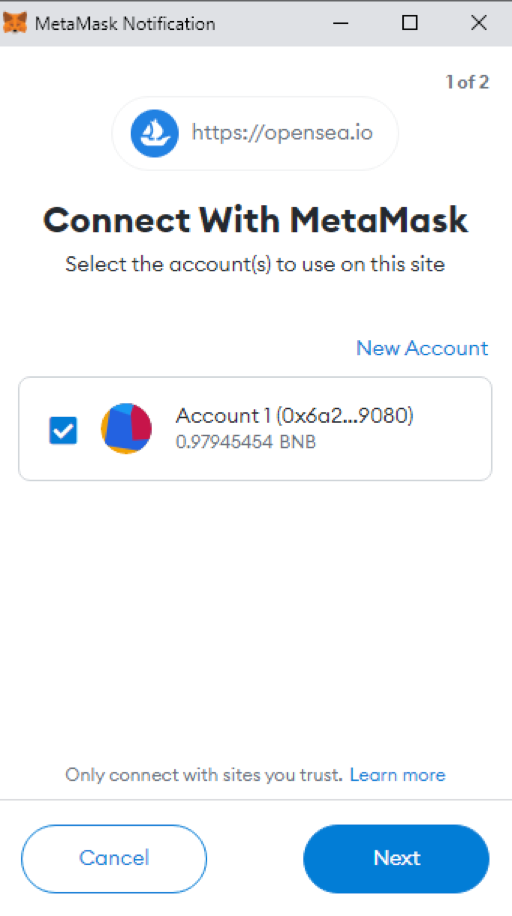 Kehren Sie zu OpenSea zurück und wählen Sie MetaMask aus. Verfügbare Konten werden angezeigt, und Sie müssen dasjenige auswählen, das Sie verwenden möchten.