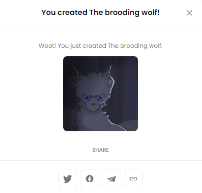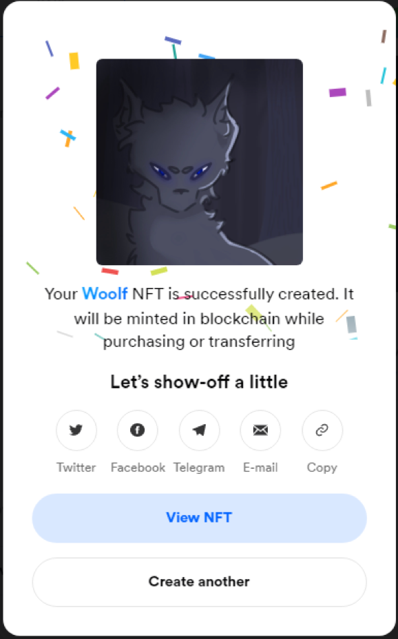 Sie können ihn auf Twitter, Facebook oder Telegram teilen. Oder Sie können auch den Link kopieren und Ihre erste NFT-Sammlung auf anderen Plattformen bewerben.