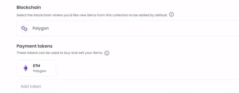 Auf dieser Seite sollten Sie auch eine Blockchain für Ihre Tokens auswählen. Die meisten Benutzer wählen entweder Ethereum oder Polygon. Ersteres gilt als zuverlässiger, aber es hat höhere Gebühren. Letzteres berechnet keine Gebühren für die Token-Erstellung, aber laut erfahrenen Benutzern gibt es viele Betrüger.