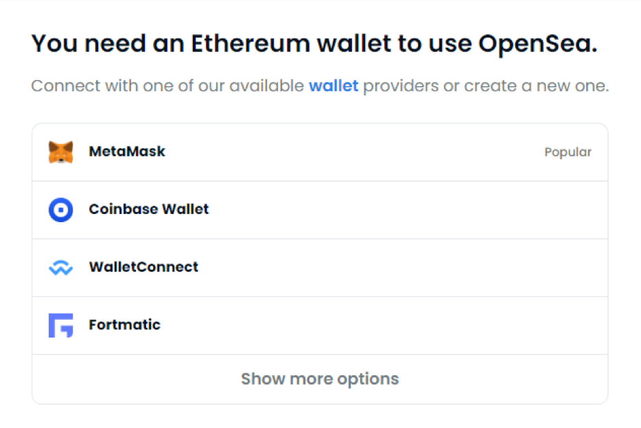 Tokens können sowohl zu einem festen Preis als auch bei zeitlich begrenzten Auktionen verkauft werden. Um ein NFT zu erstellen, gehen wir zunächst zu OpenSea.io. Das System bietet neuen Benutzern die Möglichkeit, über eine digitale Geldbörse eine Verbindung herzustellen.