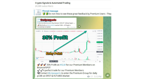 Los grupos de señales de criptomonedas gratuitas en Telegram pueden emitir solo unas pocas llamadas por semana y es posible que solo se den unos minutos después de que los clientes premium hayan recibido las mejores señales de criptomonedas. Por supuesto, puedes continuar operando siguiendo estas mejores señales de criptomonedas.