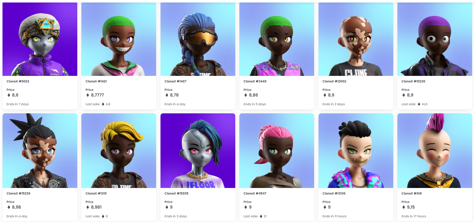 - Несколько серий аватаров NFT CLONE X - X TAKASHI MURAKAMI: