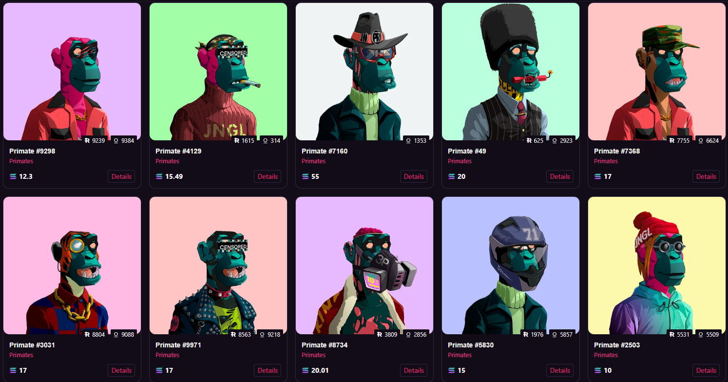 - Идея несколько похожа на BAYC - NFT-идеи web3 пространства Primates в Интернете через наше сообщество, получающее поддержку со стороны бизнеса и коллабораций: