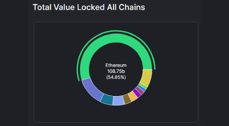 根据defillama.com的数据,几乎55%的去中心化金融资产都基于以太坊区块链。